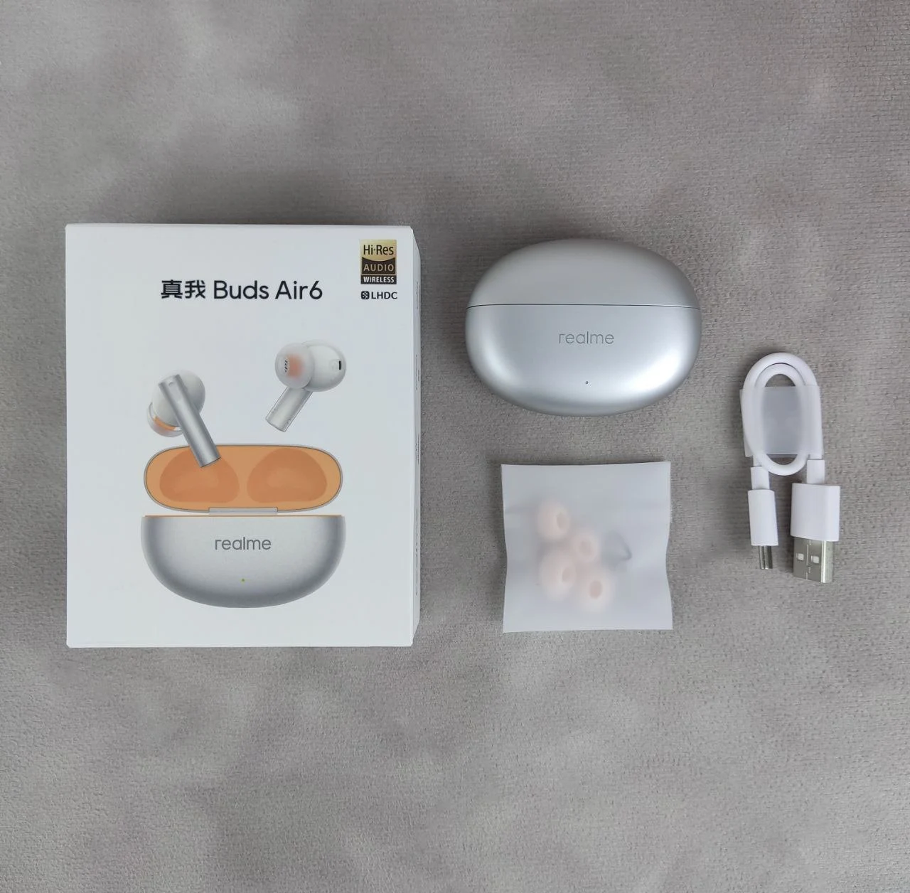 Наушники Realme Buds Air 6 с внутриканальной конструкцией привлекают внимание своим элегантным дизайном и передовыми техническими характеристиками. Металлический блеск корпуса сочетается с практичными силиконовыми амбушюрами, которые идеально прилегают к ушному каналу, обеспечивая комфорт даже при длительном использовании.